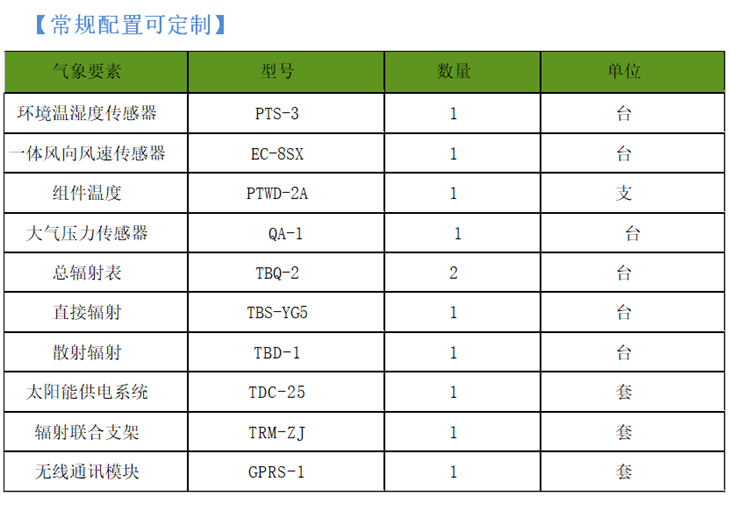這套系統(tǒng)可觀測(cè)的環(huán)境輻射要素有:環(huán)境溫度、環(huán)境濕度、組件溫度、風(fēng)速、風(fēng)向、氣壓、太陽(yáng)總輻射、日照時(shí)數(shù)、太陽(yáng)總輻射、太陽(yáng)直接輻射、太陽(yáng)散射輻射等指標(biāo)。具有性能穩(wěn)定,檢測(cè)精度高,完全無(wú)人值守等特點(diǎn),可滿足專業(yè)光伏電站環(huán)境氣象監(jiān)測(cè)、太陽(yáng)輻射監(jiān)測(cè)等相關(guān)要求。