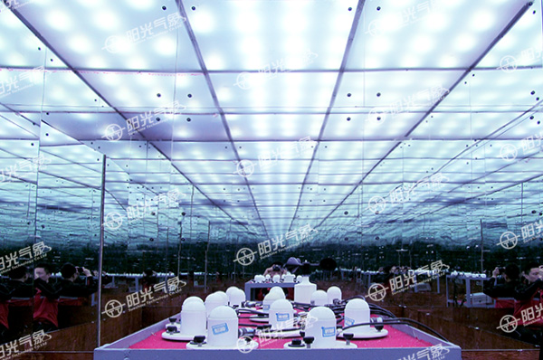 人工天穹,利用穩(wěn)定的LED燈矩陣組,分組控制,達(dá)到亮度一致均勻,通過高透光率的擴(kuò)散膜進(jìn)一步均勻擴(kuò)散。達(dá)到平面鏡做的四個內(nèi)立面后經(jīng)過多次反射,使天空亮度滿足國際照明學(xué)會標(biāo)準(zhǔn)全云天空亮度分布或均勻亮度分布。