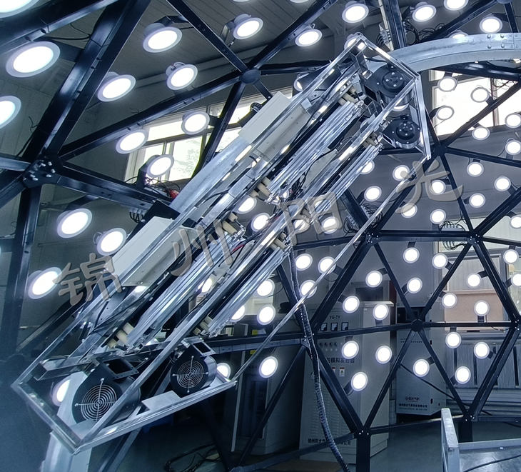 近年來(lái)隨著太陽(yáng)能應(yīng)用的不斷發(fā)展,關(guān)于太陽(yáng)能利用、轉(zhuǎn)換的相關(guān)產(chǎn)品,尤其是太陽(yáng)能電池板的使用量也逐漸增加。過(guò)去,這些產(chǎn)品都是在自然環(huán)境下進(jìn)行測(cè)試,受制于氣候條件,因此存在測(cè)試周期長(zhǎng)、數(shù)據(jù)的可重現(xiàn)性差等不足。JZYG-TGS1智能人工模擬天穹是模擬天空及太陽(yáng)運(yùn)行的一種光源設(shè)備,可以在高精度擬合太陽(yáng)光譜分布的前提下,實(shí)現(xiàn)不同的太陽(yáng)輻照度、光照角度等條件,滿足測(cè)試研究對(duì)太陽(yáng)輻照的特殊需求。使用智能人工模擬天穹能夠克服氣候多變性所造成的不便,可以全年24小時(shí)在室內(nèi)對(duì)太陽(yáng)能產(chǎn)品進(jìn)行測(cè)試。