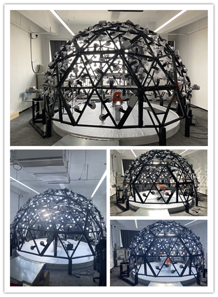 采用可拆卸獨(dú)立單元組裝形式,實(shí)現(xiàn)大直徑大跨度的安裝,方便設(shè)備重新拆裝。矩形鋼構(gòu)框架,分為六邊形和五邊形2種結(jié)構(gòu)單元,每個(gè)單元有六個(gè)或五個(gè)三角型,每個(gè)三角形內(nèi)有等大的三個(gè)擴(kuò)散光源。為便于實(shí)驗(yàn)和參觀展示,主體結(jié)構(gòu)留有一個(gè)寬約0.6米、高0.8米的入口。主體框架結(jié)構(gòu)中還包含固定發(fā)光體的光學(xué)機(jī)械裝置及發(fā)光體移動(dòng)滑軌。