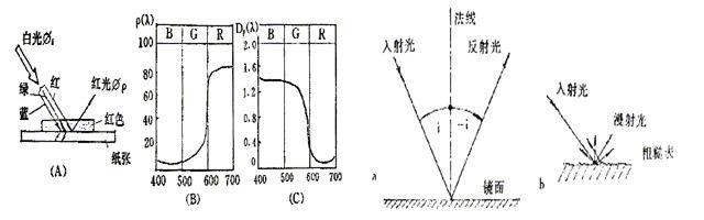 所謂反射是指選擇反射,非透明體受到光照射后,由于其表面分子結(jié)構(gòu)差異而形成選擇性吸收,從而將可見光譜中某一部分波長(zhǎng)的輻射能吸收了,而將剩余的色光反射出來(lái),這種物體稱為非透過(guò)體或反射體。本儀器就是利用此原理,采用光電轉(zhuǎn)換感應(yīng)原理,它與多功能數(shù)字感應(yīng)器配接使用,均能精確的測(cè)量出不同材料的反射率和不同光源的光譜范圍。儀器的感應(yīng)元件采用了繞線電鍍式多接點(diǎn)熱點(diǎn)堆,其表面涂有高吸收率的涂層,感應(yīng)元件的熱接點(diǎn)在感應(yīng)面上,而冷接點(diǎn)位于一起的機(jī)體內(nèi),以便直接取環(huán)境溫度。為了防止熱接點(diǎn)單方向通過(guò)玻璃罩與環(huán)境進(jìn)行熱交換影響測(cè)量精度,采用了兩層玻璃罩。當(dāng)有光波通過(guò)反射片反射過(guò)來(lái)的時(shí)候,接受儀的冷熱接點(diǎn)就會(huì)產(chǎn)生溫差即產(chǎn)生電勢(shì)值,也就是將光信號(hào)轉(zhuǎn)換為電信號(hào)輸出,在線性誤差范圍內(nèi),輸出的信號(hào)與光波通過(guò)反射片反射出的光照度成正比。光的鏡面反射與粗糙面反射示意圖如下: