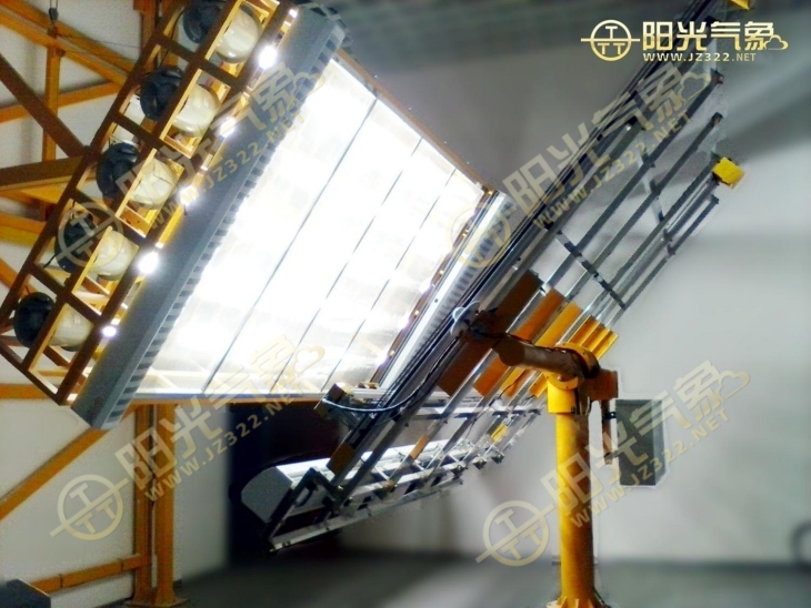 光源的均勻性是太陽模擬器的重要指標(biāo),一般通過調(diào)整每只光源的亮度與位置只能改變大的均勻誤差。但精密均勻性調(diào)整必須通過光源均光板完成。均光板是一種金屬網(wǎng)格狀的透光裝置,是我公司的專利產(chǎn)品,通過改變網(wǎng)格的密度,實(shí)現(xiàn)各點(diǎn)光的均勻性的調(diào)整,調(diào)整精度很高。其采用不銹鋼材料,耐高溫,不影響光譜質(zhì)量,經(jīng)過均光板發(fā)出的光源均勻性較好,照射集熱器表面,滿足試驗(yàn)要求。