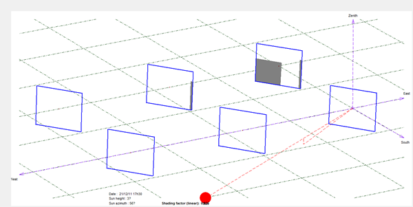 TT追日跟蹤器設(shè)計(jì)高度角為20°~80°,因此在設(shè)計(jì)跟蹤器排布時(shí)需考慮到太陽(yáng)高度角在大于20°時(shí),跟蹤器之間不會(huì)互相遮擋。