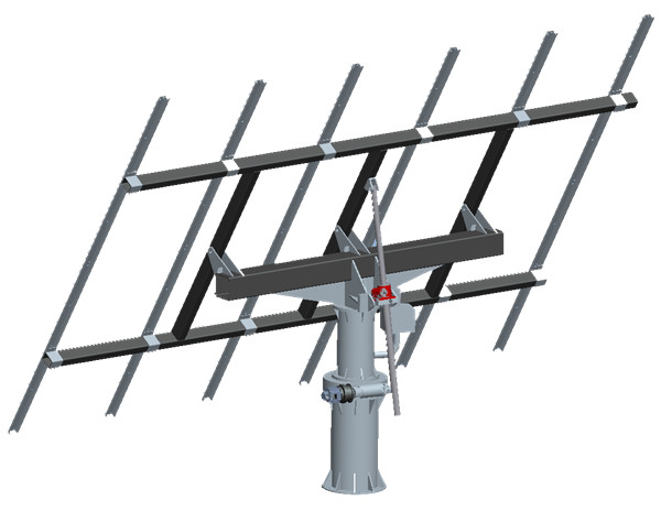 根據(jù)追日跟蹤器跟蹤的維數(shù)(從一個(gè)或兩個(gè)方向上跟蹤太陽(yáng))我們將跟蹤系統(tǒng)分為單軸跟蹤和雙軸跟蹤,作為高倍聚光光伏發(fā)電系統(tǒng)中,我們使用雙軸跟蹤方式。
