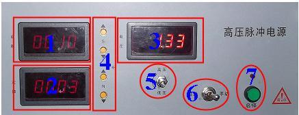 2.3、 3是脈沖電壓顯示:可通過下面旋鈕來加減,0 ~ 8KV可調(diào)。