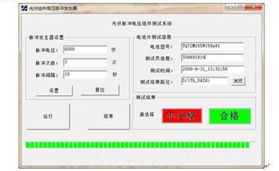 運(yùn)行:脈沖發(fā)生器參數(shù)和電池片信息確定后,點(diǎn)擊運(yùn)行按鈕,開始測試。