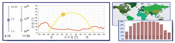 可以針對不同的建筑、不同時間段進行模擬計算軟件中采用動態(tài)建筑模擬,考慮到建筑所有相關(guān)的參數(shù),包括幾何結(jié)構(gòu)、方位和熱質(zhì),提供詳細的隔熱數(shù)據(jù);同時軟件在計算中,由定位坐標和地平線共同確定太陽的位置,每四分鐘更新一次,因此甚至可以專門針對某小時、某天或者某段時期內(nèi)的太陽能系統(tǒng)進行模擬計算;