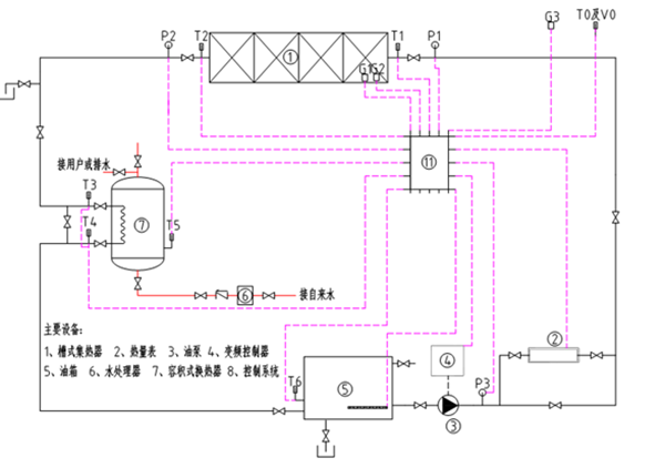 | 3 | 管路溫度 | 測量范圍 | 0~300℃ | 集熱器進(jìn)出口T1T2、容積式換熱器油路進(jìn)出口T3T4、容積式換熱器T5、油箱T6。 |