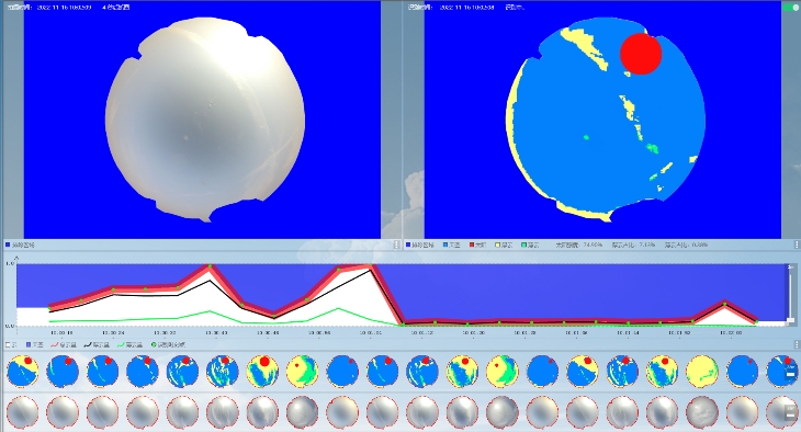 該系統(tǒng)內(nèi)置了自主研發(fā)的強光干擾抑制算法、衍射光抑制算法、除霧算法、云層識別算法等重要算法,必要時可對各算法的相關(guān)參數(shù)作出調(diào)整,以適應(yīng)各種極端條件下的天空影像數(shù)據(jù)識別。