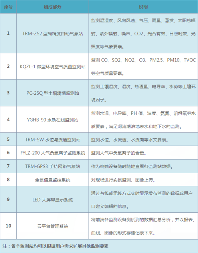 1、整個生態(tài)環(huán)境監(jiān)測系統(tǒng)包括氣象站、水文監(jiān)測站、水質(zhì)監(jiān)測站、土壤監(jiān)測站、微型空氣質(zhì)量監(jiān)測站、負氧離子監(jiān)測站,真正實現(xiàn)了生態(tài)環(huán)境的全方位監(jiān)測;