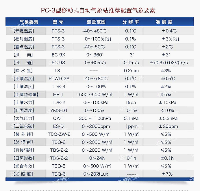 自動氣象站是一種能自動地觀測和存儲氣象觀測數(shù)據(jù)的設(shè)備,PC-3型移動式自動氣象站采用一體化設(shè)計,它具有移動觀測能力,測量精度高,集成多項(xiàng)氣象要素的可移動觀測系統(tǒng),可測量風(fēng)向、風(fēng)速、溫度、濕度、氣壓、雨量、光照度、土壤溫度、土壤濕度、露點(diǎn)、太陽輻射量、太陽紫外線等多項(xiàng)信息并做公告和趨勢分析便于用戶對氣象數(shù)據(jù)的使用、分析和處理。該氣象站是測量氣象要素非常全面的小氣候觀測站,可根據(jù)用戶需要靈活增加或減少相應(yīng)的模塊和傳感器,可滿足各類用戶的需求。