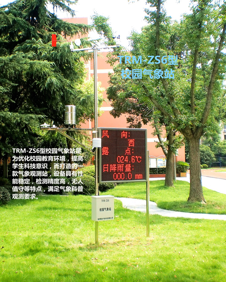 TRM-ZS6校園氣象站專業(yè)針對(duì)與生活環(huán)境息息相關(guān)的觀測(cè)指標(biāo)進(jìn)行設(shè)備配置,自動(dòng)氣象站對(duì)采集數(shù)據(jù)信息以圖表、數(shù)據(jù)的形式真實(shí)、直觀的反應(yīng)當(dāng)前環(huán)境數(shù)據(jù)指標(biāo)??赏ㄟ^各種傳感器對(duì)氣壓、氣溫、相對(duì)濕度、風(fēng)向、風(fēng)速、雨量、太陽輻射、空氣質(zhì)量等要素進(jìn)行采集、存儲(chǔ)和顯示。