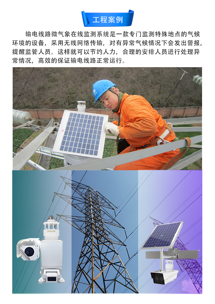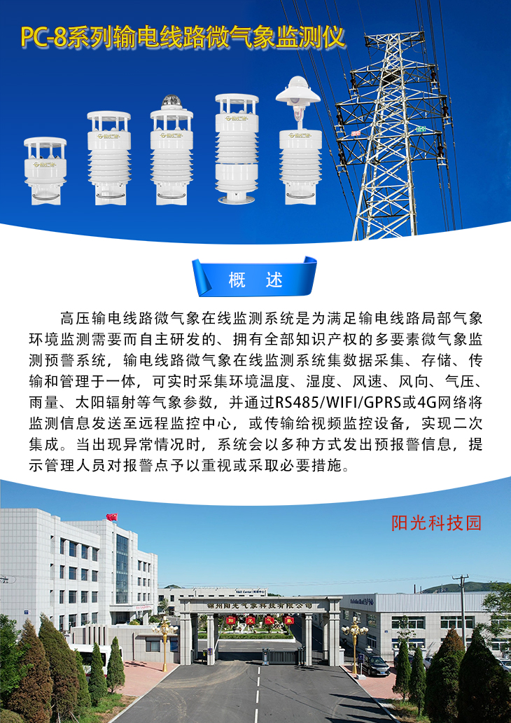 高壓輸電線路微氣象在線監(jiān)測系統(tǒng)是為滿足輸電線路局部氣象環(huán)境監(jiān)測需要而自主研發(fā)的、擁有全部知識產(chǎn)權的多要素微氣象監(jiān)測預警系統(tǒng),輸電線路微氣象在線監(jiān)測系統(tǒng)集數(shù)據(jù)采集、存儲、傳輸和管理于一體,可實時采集環(huán)境溫度、濕度、風速、風向、氣壓、雨量、太陽輻射等氣象參數(shù),并通過RS485/WiFi/GPRS或4G網(wǎng)絡將監(jiān)測信息發(fā)送至遠程監(jiān)控中心,或傳輸給視頻監(jiān)控設備,實現(xiàn)二次集成。當出現(xiàn)異常情況時,系統(tǒng)會以多種方式發(fā)出預報警信息,提示管理人員對報警點予以重視或采取必要措施。