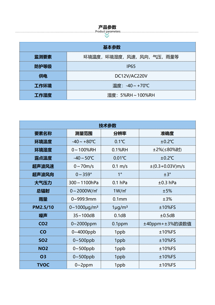 1,產(chǎn)品采用超聲波探頭實(shí)現(xiàn)對風(fēng)速風(fēng)向的測量,無啟動風(fēng)速限制,能夠?qū)崿F(xiàn)風(fēng)向360°全方位的監(jiān)測。這意味著無論是在微風(fēng)還是大風(fēng)環(huán)境下,都能準(zhǔn)確地捕捉到風(fēng)速和風(fēng)向的變化,為氣象預(yù)報提供精準(zhǔn)的數(shù)據(jù)支持。