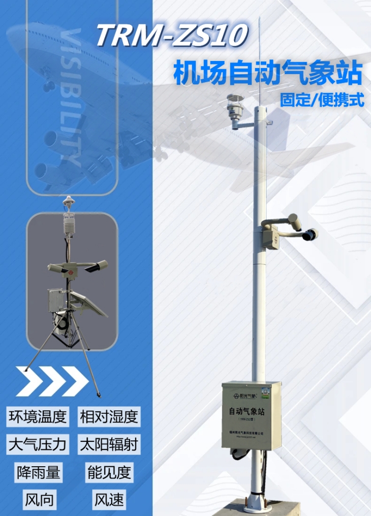 常規(guī)機(jī)場(chǎng)氣象站分為固定式和便攜式兩種觀測(cè)方式,固定式常選用分 體結(jié)構(gòu),立桿高度通常為 6-10 米;而便攜式常選用一體化結(jié)構(gòu),小巧重量輕便,隨測(cè)隨走,可快速部署到機(jī)場(chǎng)的不同領(lǐng)域,實(shí)現(xiàn)全方位無(wú)死角監(jiān)測(cè)。