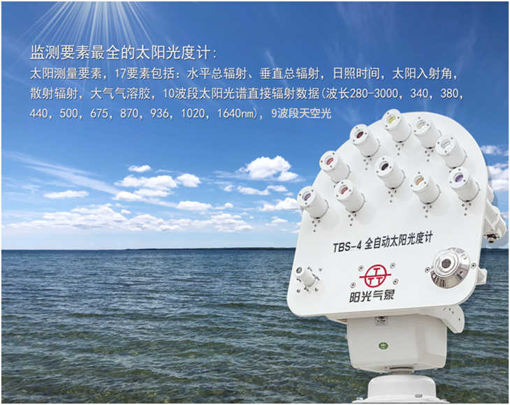3、可推算出大氣氣溶膠厚度,大氣氣溶膠指的是膠體分散體系的一種,具體是指固體小顆?;蛞后w小質點在氣體介質中懸浮、分散所形成的氣體分散體系。系統(tǒng)可通過天空掃描數據及太陽輻射數據來計算大氣透光率或散射光的強度,并與標準的光度進行比較,再反演氣溶膠光學和其他特性,如粒度譜、相函數等。從而推算出大氣汽溶膠厚度,水汽,臭氧等成分的特性;
