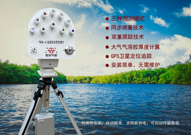 TBS-4全自動太陽光度計為高精度野外太陽和天空輻射測量儀器,不但可以測量十個波段的太陽直接輻射,還可以測量太陽的總輻射、散射輻射、日照時數、太陽高度角、大氣氣溶膠厚度等諸多要素,并可以通過GPS實時定位追蹤。還具有易攜帶安裝,自動瞄準,太陽能供電,無線組網云端監(jiān)測,數據自動傳輸等特點。它將機器人控制技術與輻射測量技術完美結合,采用了太陽光追蹤+旋轉角度測量+輻射光譜測量+GPS 衛(wèi)星定位追蹤等綜合應用技術。它是當今應用廣、功能全、權威性高的太陽光度計儀器。主要用于測量太陽和天空在可見光和近紅外的不同波段、不同方向、不同時間的輻射亮度,來推算大氣氣溶膠、水汽、臭氧等成分的特性。用于大氣環(huán)境監(jiān)測,衛(wèi)星校正等應用。