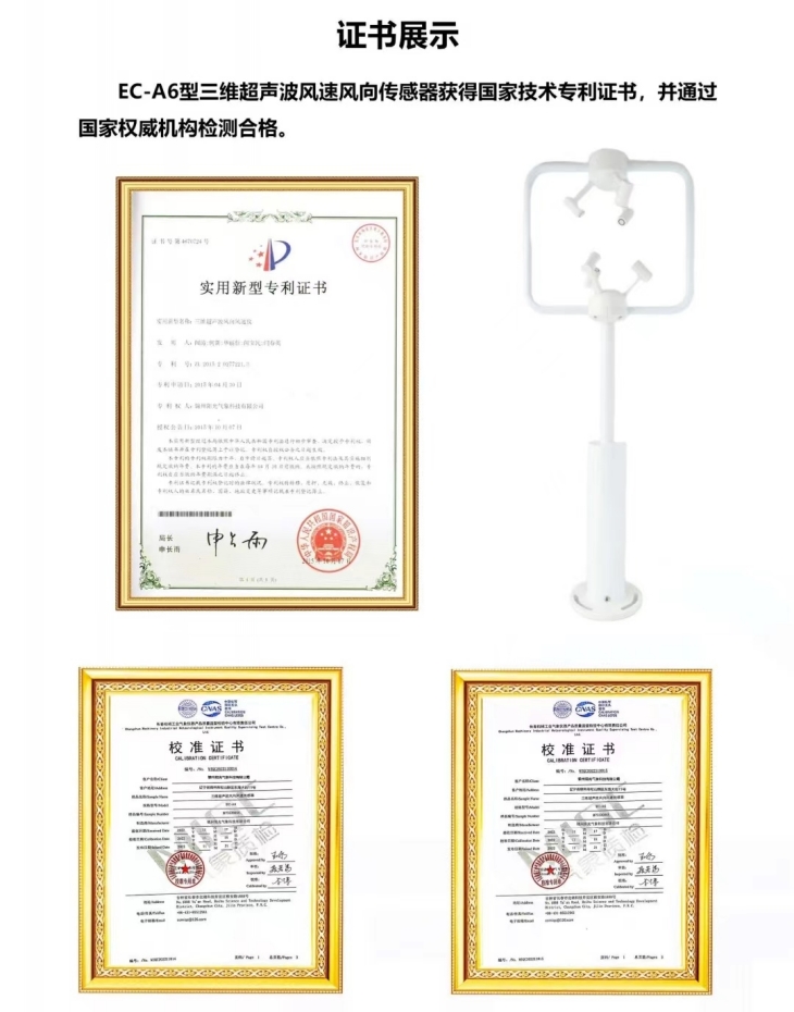 EC-A6型三維超聲波風(fēng)速風(fēng)向傳感器采用先進(jìn)的超聲波測量技術(shù),獨(dú)特的兩根支撐桿結(jié)構(gòu)設(shè)計(jì),大大減小了風(fēng)阻的影響,提升了測量的精度。它具有全金屬材質(zhì),沒有任何移動部件,堅(jiān)固耐用的特點(diǎn),可以同時(shí)測量水平和垂直方向的風(fēng)向, X/Y/Z軸風(fēng)速(即U、V、W矢量輸出),聲溫、聲速等參數(shù)。適應(yīng)在各種環(huán)境下,全天候、長久的正常工作,為各領(lǐng)域的氣象監(jiān)測提供可靠數(shù)據(jù)。三維超聲波風(fēng)向風(fēng)速傳感器用來測量近地風(fēng)向、風(fēng)速。廣泛應(yīng)用于城市環(huán)境監(jiān)測、風(fēng)力發(fā)電、氣象監(jiān)測、橋梁隧道、航海船舶、航空機(jī)場等領(lǐng)域。