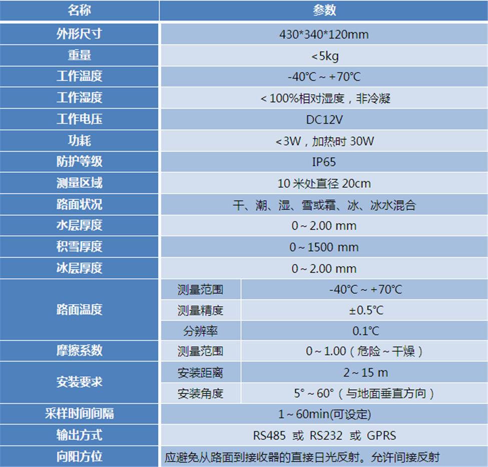 路面溫度采用紅外測溫原理,實現(xiàn)了非接觸遠距離精準測量路面溫度。